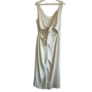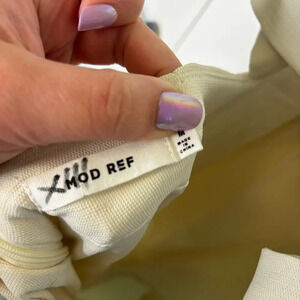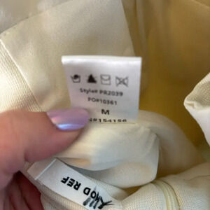 Has pockets, the tie/belt makes it somewhat adjustable on the top. Criss cross back is extremely flattering. This is lined with shorts and is not see through