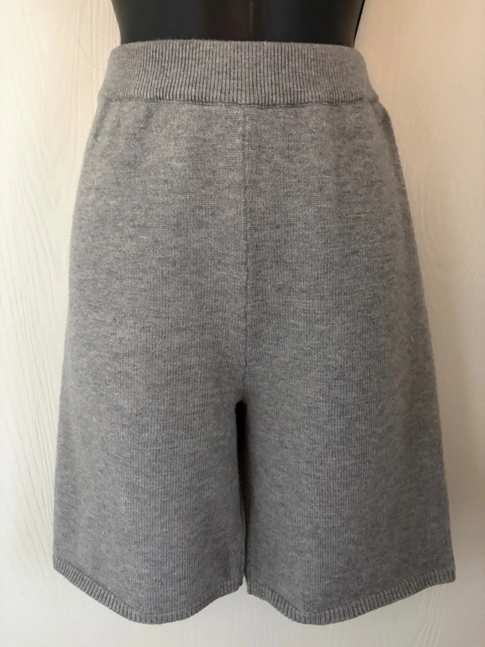 Mod Ref gray minimalist shorts in size medium. Ribbed elastic waistband and hem, waist measures 13” across, 12” rise, inseam is 7 1/2”. No pockets.