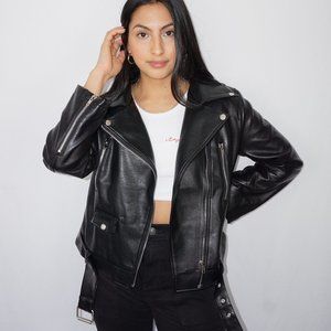 The Moto Faux Leather Jacket is the statement piece your closet has been missing! The quality fabric along with exquisitely detailed trims makes this the perfect moto jacket.