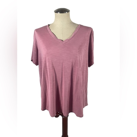The soft mauve color is versatile and easy to pair with jeans, shorts, or skirts. The v-neck design adds a flattering touch, making it a great addition to any outfit.