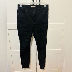 Stretchy ribbed material with ankle slits. Waistband is twisted. See photos.