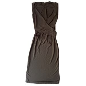 Mod Ref Sleeveless, Open Back Wrap Tie Waist Brown Knit Maxi Dress Small