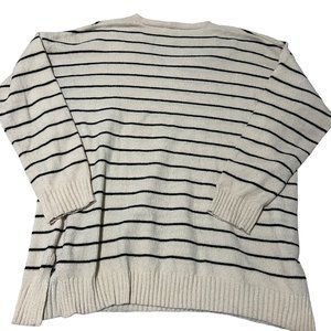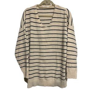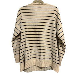Mod Ref Sweater Womens Cream Black Striped Knit V Neck Pullover Size M/L