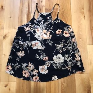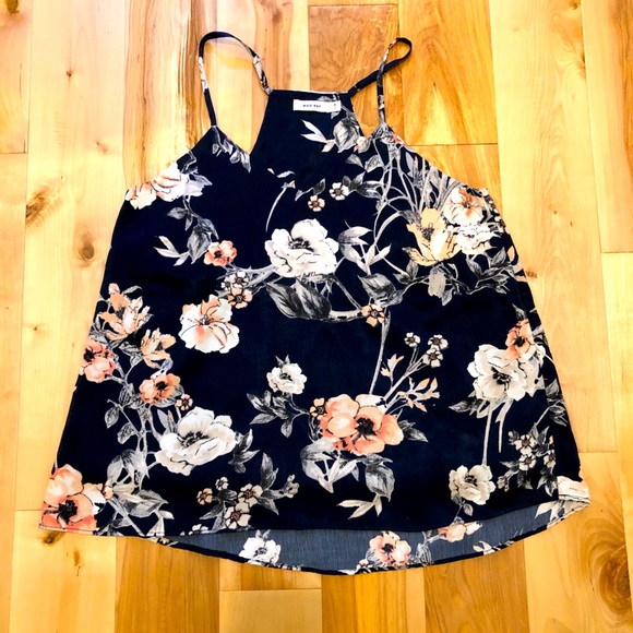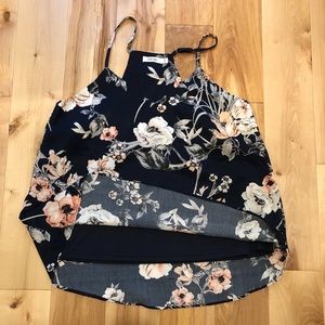 EUC- Worn twice, beautiful floral pattern against the navy blue background. Material has a heavier silky feel to it. Lined.