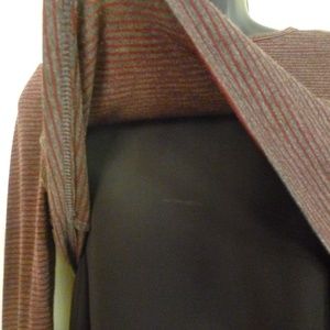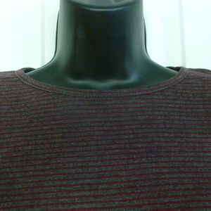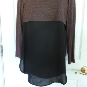 Black Sheer Under Tunic with Gray & Maroon Striped Crop Over-shirt. It's one piece at the shoulder seams. Darling Top!