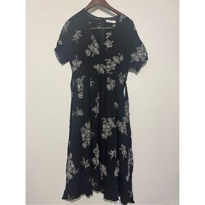 Mod Ref Women’s Black And White Embroidered Floral Dress Medium