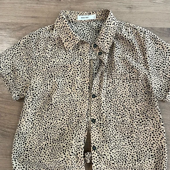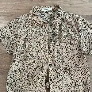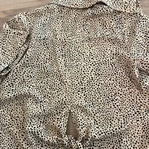 This T-shirt blouse could be dressed up or down. It has a little tie in the back to make it more form fitting.