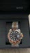 Seiko watch with a striking black dial. Features a rose gold and silver two-tone band. Bold and stylish design.