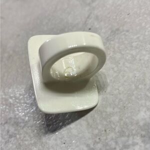 Cream colored & white with gold tone trim resin statement ring B6