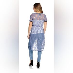 Mod X sheer lace Short sleeve rib knit trimmed midi dress