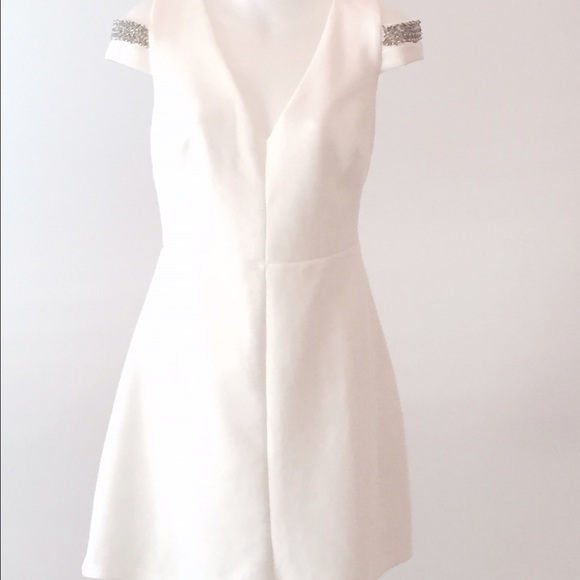 An A line white dress with shoulder embellished cap sleeve
