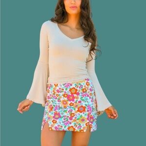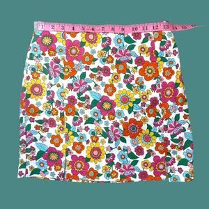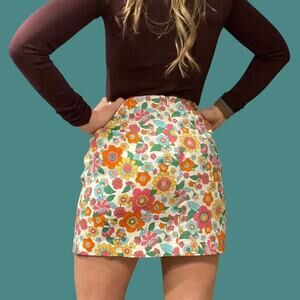 Mod floral mini skirt Love on a Hanger brand EUC Size 5 27” waist 16” length 98% cotton