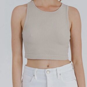 Seamless rib knit tank top with crew neckline Color: bone Sizes: small and medium