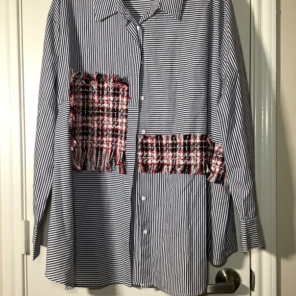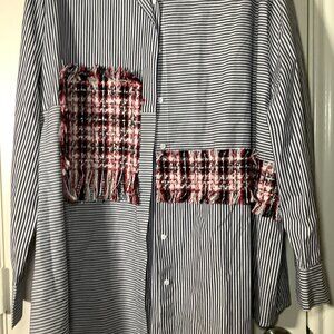 Mod x Women Striped Tweed Patchwork Oversized Top
