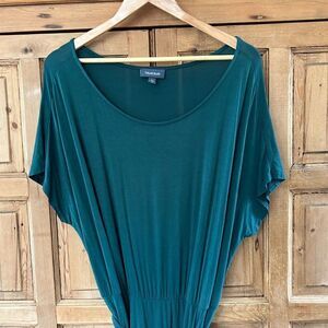 ModCloth 2X Green Boatneck Dress Belted Stretchy Short Sleeves Rayon Midi
