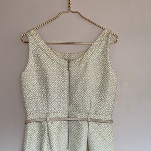 Yumi Cream & White Floral Belted Scoop Neck Dress. Sleeveless, back zipper and with belt.