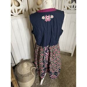 ModCloth A Conversation Masterpiece Dress Navy Embroidered Floral Fit & Flare XL