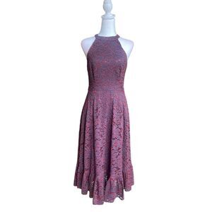 ModCloth A Night Like This Halter Dress Lace Red Blue Sleeveless Womens Size 4