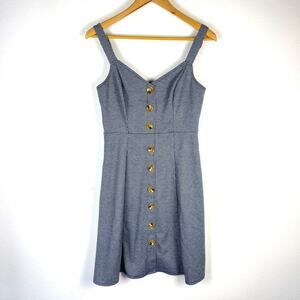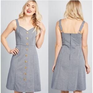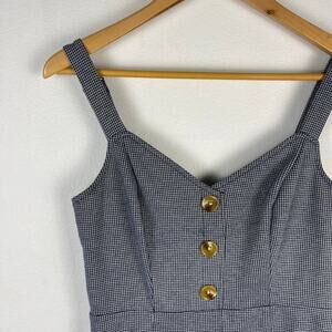 ModCloth Alfresco Invitation Houndstooth Dress Navy Gray Button Front Medium