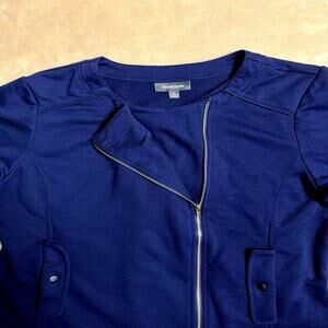 ModCloth Asymmetrical Unstructured Blazer Women's L Navy Jacket Modern Zipper