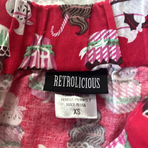 What fun it is to see you twirl about in this bright red skirt! A merry print of holiday-themed cupcakes adorn this pocketed, cotton piece, which is the icing of any outfit you cook up.