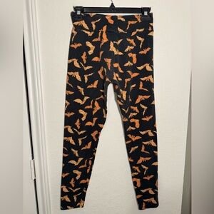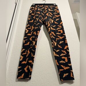 ModCloth Bat Leggings Womens Medium Black Orange Halloween Fall Pumpkin Ankle