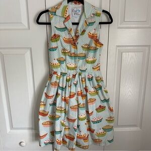 ModCloth Bea & Dot Womens Novelty Pie Print Pin Up Dress Sz M Cottagecore