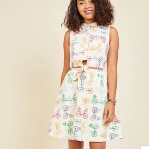 ModCloth Bicycles Novelty Print Cotton Cut Out Tie Up Sleeveless Mini Dress