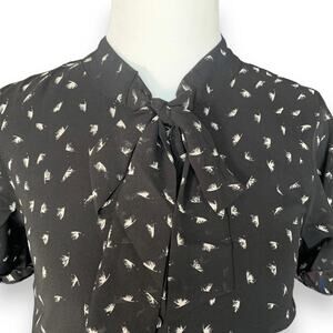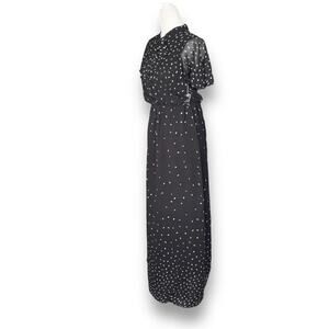 ModCloth Black Dandelion Maxi Dress Bow Detail Tie Neck Sheer Flutter Sleeve XS