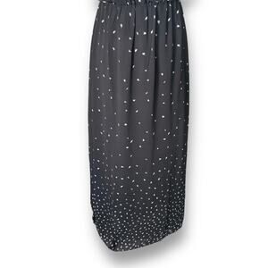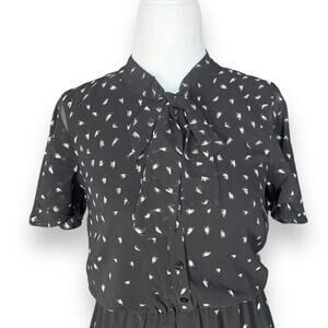 ModCloth Black Maxi Dress White Dandelion Print Bow Tie Neck