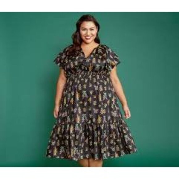 ModCloth Black Floral Flutter Sleeve Midi Dress 4X