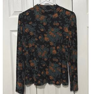 ModCloth Black Floral Mock Neck Long Sleeve Top Medium