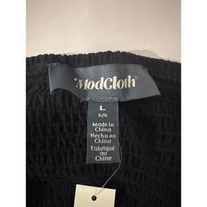 ModCloth Black Maxi Dress Jersey Knit Short Sleeve Peasant Ruched Size L NWT
