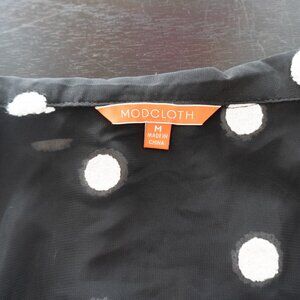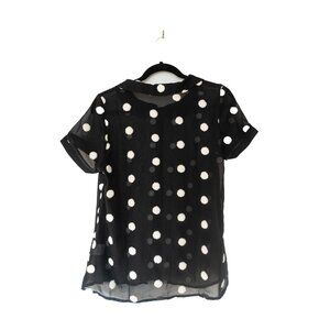 ModCloth Black Polka Dot Peter Pan Collar Sheer Short Sleeve Blouse Size M