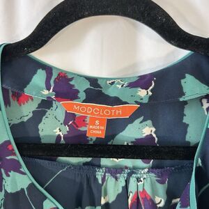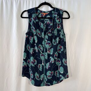 ModCloth Blouse Women's Small Green Blue Floral Sleeveless Polyester
