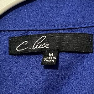 C. Luce size medium royal blue dress from ModCloth. Dress buttons all the way up and is collared with a cut-out feature on front and back. NWOT, runs slightly large. Fabric is heavier but quality feel and dress is flowy and lightweight.