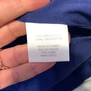 ModCloth Blue Dress vneck peach yellow white stripe bust trim fit flare 14 plus