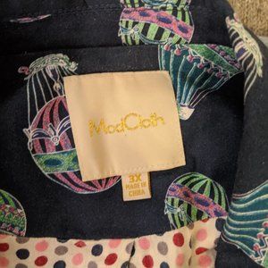 Size 3X. Funky little piece I enjoyed wearing around the office to brighten people's days. All buttons are in tact. 3/4 sleeves. Lined with a colorful polka dot fabric.