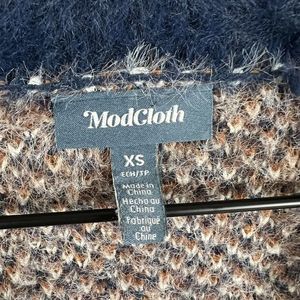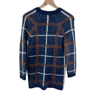 ModCloth Blue Plaid Faux Fur Long Sleeve Deep V Neck Front Button Cardigan XS