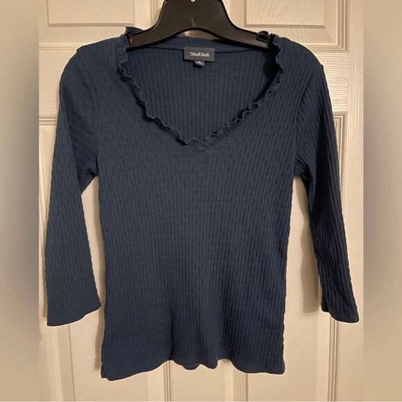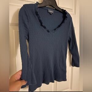 ModCloth Blue Ribbed Ruffle V Neck Top size medium