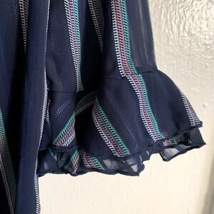 ModCloth Blue Striped Sheer Blouse Size M Tiered Flutter Ruffle Sleeve
