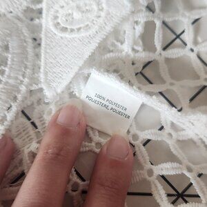 Super cute white lace top purchased from ModCloth many years ago. I genuinely don't remember ever wearing it, so it is in excellent condition. Size S, does not stretch at all. It has cute grandma core, cottagecore, feminine vibes. Would look cute tucked into a skirt or worn with a pair of jeans and a cozy, colorful cardigan.