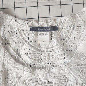 ModCloth Blue Tassel White Lace Short Sleeve Top Size S Like New