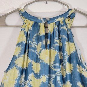 ModCloth Blue Yellow Floral Chiffon Lined High-Low Dress Large