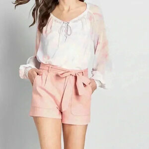 Flaunt your free-spirited style with this ModCloth “Boho I Go” chiffon blouse! Featuring a beautiful pink tie-dye design atop a sheer construction, this lightweight blouse is perfect for any casual or dressy occasion. It boasts long balloon sleeves with smocked cuffs, a notched neckline with lace-up detailing, and a flowy silhouette for ultimate comfort and style.