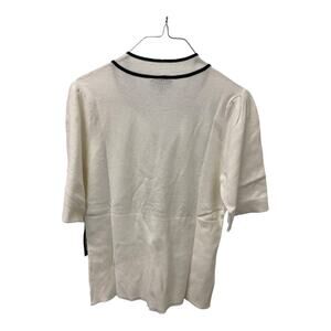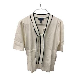 ModCloth Bow Thyself Tie Neck Knit Top LARGE White Black Short Sleeve Retro Chic