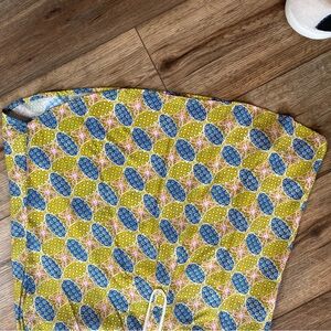 Color & Pattern: The top is primarily chartreuse (a yellowish-green) with a vibrant, intricate pattern incorporating shades of blue and pink.