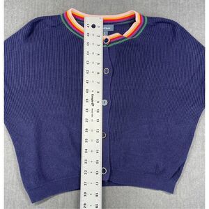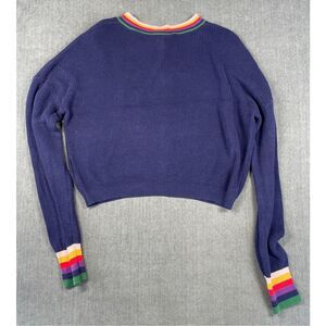 ModCloth Cardigan Womens S Navy Rainbow Trim Button Front Cropped Sweater Casual