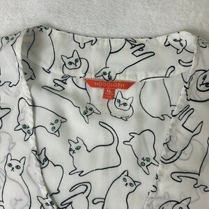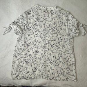 ModCloth Cat Blouse Top Women's XL Sheer White Black Kittens