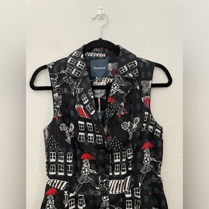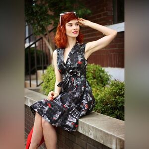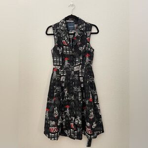 ModCloth Community Brunch Parisian Retro Collared Shirt Dress Black Small NEW